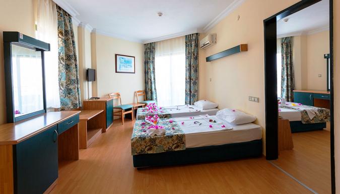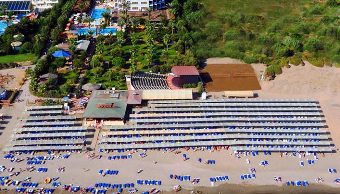 Отель состоит из 6-этажного корпуса А и 5-этажного корпуса В.Гости отеля Caretta Relax могут пользоваться частью инфраструктуры отеля Club Hotel Caretta Beach: пляжем, баром и дискотекой на пляже отеля.