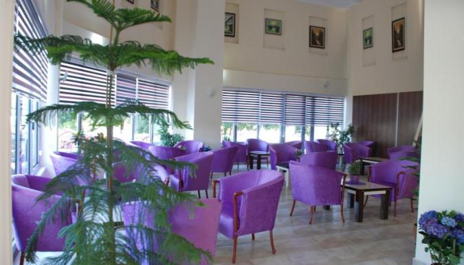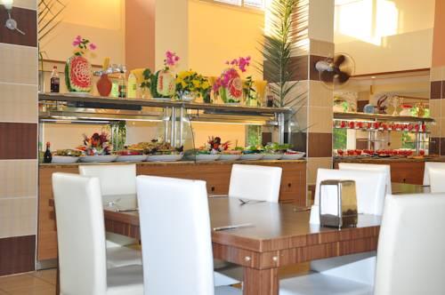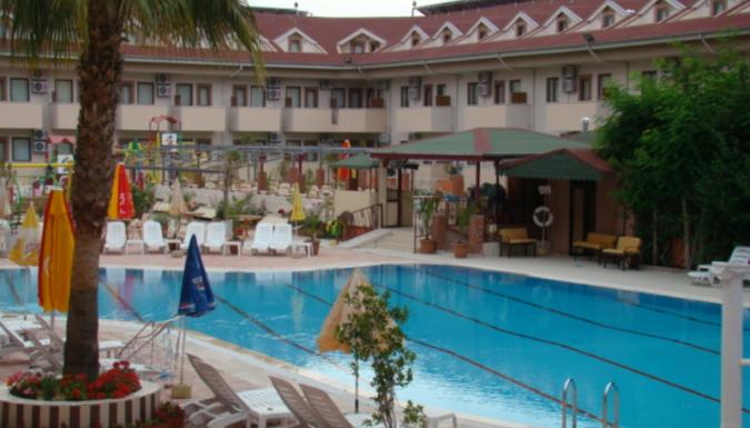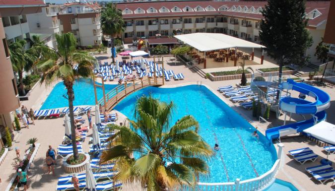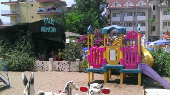 Комплекс включает один трехэтажный и один четырехэтажный корпуса. От остановки напротив отеля каждые 15 минут к пляжу с 830 утра и до вечера ездит автобус.
