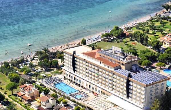 Построен в 1993 году, общая площадь 6500 кв. м последняя реставрация сделана в 2005-м. Отель состоит из одного 7-этажного корпуса (все номера с частичным видом на море): 233 standard rooms (макс. 2+1 чел., 18 кв. м), 1 номеров для инвалидов; 12 family rooms (1 спальня + 1 холл с мягким уголком, без двери, макс. 2+3 чел., 30 кв. м); 4 connection rooms (2 standard rooms). Отель - настоящий гранд в мире отдыха. Комфорт и отсутствие проблем. Ваш выбор — безупречен. В отеле: ресторан предлагает блюда международной и национальной кухни, внутренний и открытый ресторан, бассейн, детская игровая площадка. Периодически в отеле устраиваются шоу, фольклорные вечера, «турецкие ночи» и др. мероприятия. Работают аниматоры. Разнообразные игры и соревнования для детей.