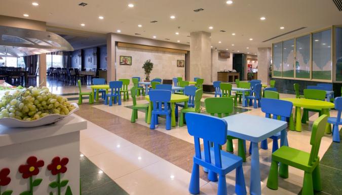 Няня (платно), Детская кроватка (по запросу), Детские стульчики (в ресторане, по запросу), Детское меню в ресторане, Детская площадка, Детская комната, Детский бассейн, Водная горка, Детский клуб.