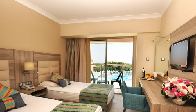 Открытый и закрытый бассейны, 2 водные горки, Фитнес-центр, Аэробика, Дартс, Настольный теннис, Водные виды спорта на пляже (платно).