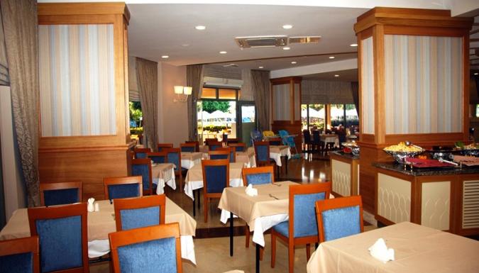 Отель состоит из двух 6-этажных корпусов (70 номеров с видом на море). Отель предлагает услуги 2 конференц-залов. В ресторан a la carte (интернациональный) можно попасть по предварительной записи, за время проживания посещение 1 раз – бесплатно; дети до 12 лет не допускаются.