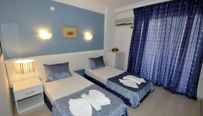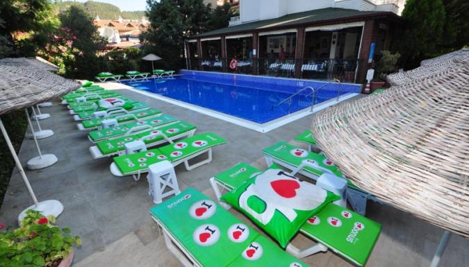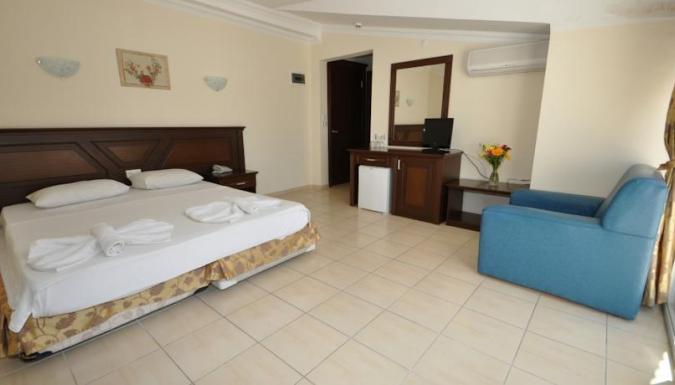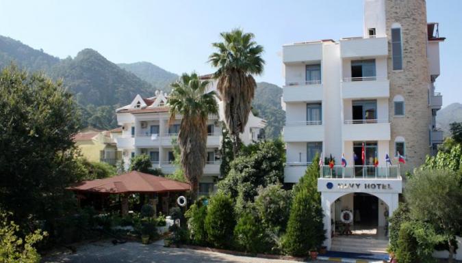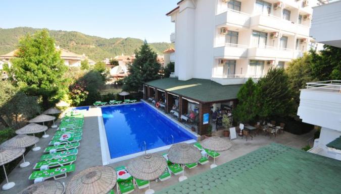 Отель расположен в очень живописном уголке природы Ичмелере, который считается по праву одним из самых прелестных курортных местечек. Ценителям тишины и покоя будет приятно посидеть в атмосфере домашнего уюта в одном из ресторанов на территории отеля. Любителям же активного отдыха в Ичмелере предлагается посетить многочисленные бары, рестораны, ночные шоу. А роскошные казино не оставят равнодушными азартных игроков. Два 4-х этажных здания. Для гостей отеля на территории расположены: 2 ресторана (открытый и закрытый, каждый из которых рассчитан на 150 мест), бар у бассейна, открытый бассейн, детский бассейн, услуги няни, телезал, сейф, обмен валюты, автостоянка. На пляже разнообразные водные виды спорта (за отдельную плату).