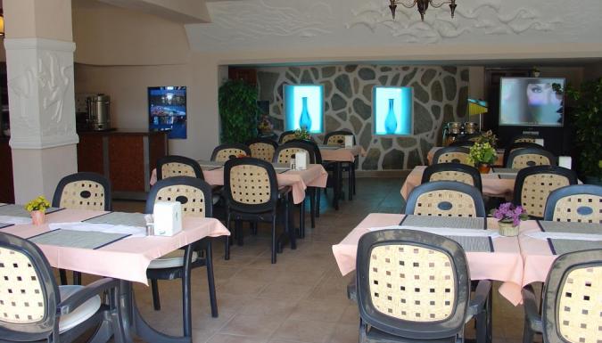 В отеле есть барбекю-бар, бар на пляже, бар у бассейна и ресторан с турецкой и интернациональной кухней. К услугам гостей отеля поле для мини-гольфа.