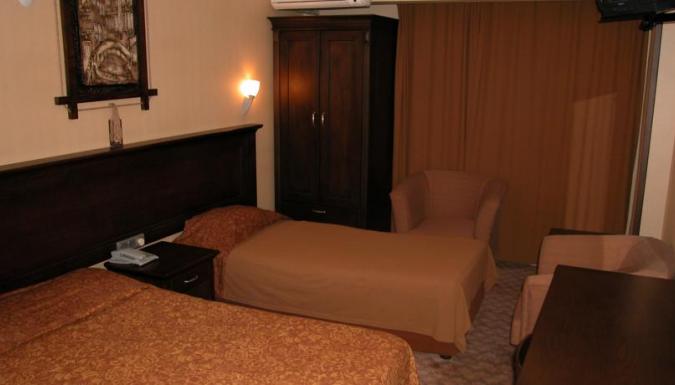 Ванна/душ, Кондиционер, Полотенца, Радио, Сейф (на reception) (Платно), Смена постельного белья (2 раза в неделю), Телевизор (Бесплатно), Телефон, Туалет, Уборка (ежедневно)