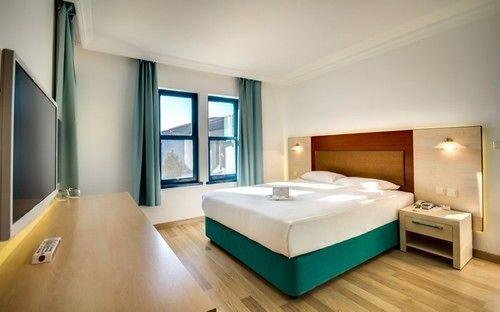 Построен в 1992 году, общая площадь 160 000 кв. м, последняя реставрация сделана в 2005-м. Отель состоит из одного 8-этажного здания Main Building (все номера с частичным видом на море) и 21 2- иили 3-этажных коттеджей Bungalow (70% номеров с видом на море): Main Building: 92 superior standard rooms (макс. 3 чел., 26 кв. м), 52 junior suite rooms (одна комната, 1 french или 2 twin bed. мягкий уголок, макс. 2+2 чел., 32 кв. м). Bungalow: 82 club rooms (макс. 2+2 чел., 28-30 кв. м); 86 двухкомнатных family rooms (1 спальня, 1 холл, макс. 2+2 чел., 30 кв. м); 40 трехкомнатных family rooms (2 спальни, 1 холл, макс. 4+2 чел., 45 кв. м).