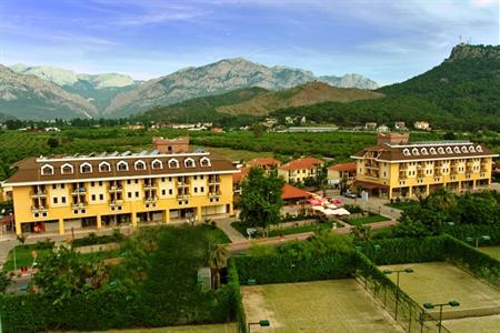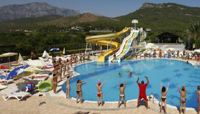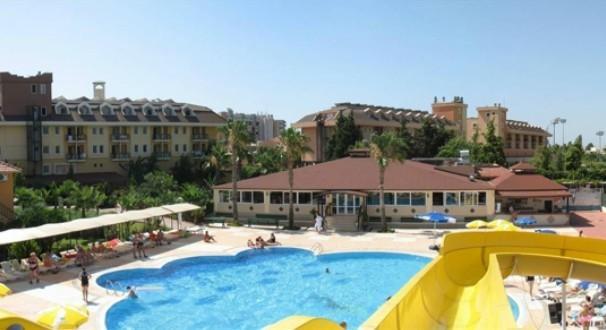 Отель состоит из двух 3-этажных корпусов и десяти 2-этажных коттеджей. Трехэтажные корпуса: 108 standart rooms (макс. 2+1 чел., 25 кв.м.) 20 двухкомнатных family rooms (холл, спальня с дверью, ванна, макс.2+2 чел., 35 кв.м.) Bungalow: 48 standart rooms (сейф на ресепшн, макс. 2 чел. 20 кв.м.) 8 двухкомнатных family rooms (холл, спальня с дверью, макс. 2+1 чел. 30 кв.м. Заботливый персонал и великолепно оформленные комфортные номера вместе с уютной обстановкой отеля дают Вам ощущение тепла и Вы чувствуете себя как дома. Находящийся в центре туристского поселка, в окружении магазинов и баров, отель оправдает Ваши ожидания и Вы не найдете лучшего места для чудесного отдыха. Отель рассчитан на 380 человек. Площадь номеров - от 16 кв. м. Тип доп. кровати - раскладная. В апарт-номерах нет сейфа, гости могут воспользоваться сейфом на ресепшн. Приглашаем Вас принять участие в разнообразных конкурсах и насладиться феерическими шоу-программами, устраиваемыми интернациональной командой анимации в течение всего дня! В ресторане Вы можете попробовать великолепные блюда европейской и турецкой национальной кухни. Завораживающие вечерние шоу-программы и восхитительные блюда не оставят равнодушными даже самых взыскательных клиентов. На территории отеля есть снэк-бар. В снэк-баре Вам будут предложены гамбургеры, спагетти, пицца, суп, гезлеме, горячие бутерброды, кебаб, салаты и все виды местных напитков (алкогольных и безалкогольных). Бар открыт круглосуточно. Главная задача обслуживающего персонала – в течение всего отдыха предложить Вам высочайший уровень сервиса и добиться наилучших результатов в сфере обслуживания. Вам нужно только высказать свои пожелания. Система Все включено - с 7:00 до 23:00.