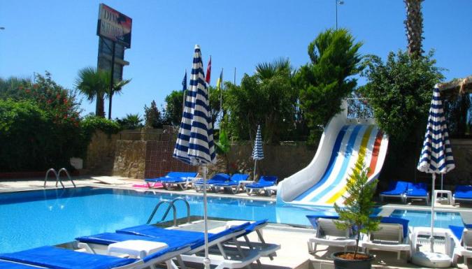 Отель DIM SUIT является райским местом для отдыха. Все побережье 300 дней в году залито солнцем. Это главный курортный район Средиземноморья с прекрасными пляжами, прозрачным ласковым морем, пальмовыми аллеями на фоне снежных вершин и археологическими и историческими памятниками. Главная достопримечательность - элегантный минарет мечети Йивли, построенный сельджукским султаном Алаэд-дином Кейкубатом в XIII в. Медресе Каратай (колледж богословия), в районе Калейчи, относится к тому же периоду. Оно является образцом изумительной резьбы по камню эпохи сельджуков. К Вашим услугам в отеле: открытый бассейн, ресторан, бар, обмен валюты. Питание: все включено Пляж: общественный, песчаный, с каменистым дном. Зонтики, шезлонги, матрасы – платно. Пляжные полотенца: нет. У бассейна: зонтики, шезлонги, матрасы – бесплатно.