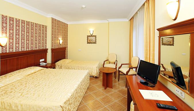 ТВ (с российским каналом), Кондиционер, Мини-бар, Сейф, Душ/ванна, Фен, Балкон/терраса, Телефон.