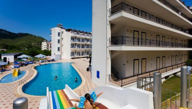 Ранее отель назывался OTIUM HOTEL BLUE CLASSIC расположен у моря, среди апельсиновых садов. Открыт в 2003 году и принимает туристов круглый год. Отельный комплекс состоит из 2-х четырехэтажных зданий. Его общая площадь составляет 7000 квадратных метров, на которой размещены: бассейн с детской секцией, открытый и закрытый ресторан и непосредственно сами корпуса с жилыми номерами.