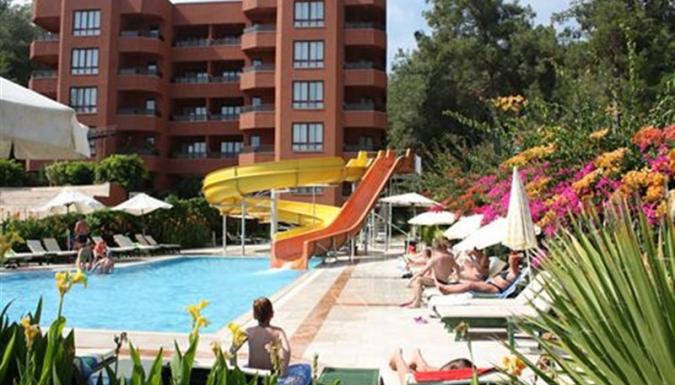 Отель открыт в 2005 году. Состоит из двух 5-ти этажных корпусов. Располагает двумя открытыми бассейнами с двумя водными горками (зонтики, шезлонги, матрасы – бесплатно), крытым бассейном, детским бассейном. Для детей также открыты мини-клуб (3 – 6 лет), игровая площадка. Отель располагает тренажерным залом, турецкой баней, сауной, массажным кабинетом. Для своих гостей отель предлагает разнообразный активный отдых: теннисный корт с жестким покрытием и освещением, настольный теннис, дартс, пляжный волейбол, водные виды спорта. В отеле основной ресторан, а так же ресторан “A-la-Carte” и 3 бара. Отель работает по системе “All Inclusive”: завтрак, обед и ужин (шведский стол), до 24.00 разнообразные закуски, чай/кофе, выпечка; алкогольные и безалкогольные напитки местного производства - бесплатно. Напитки импортного производства, все напитки в диско-баре, шампанское, свежевыжатые соки – платно. Прочие услуги в отеле: рецепция, прокат автомобилей, телевизионная комната, конференц-зал (макс. 60 чел), кабинет врача, магазины, прачечная, няня, шоу-программы. Содержание животных запрещено.