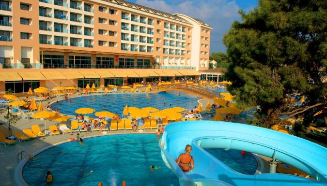 Отель представляет собой 6-этажное здание. Открылся в 2008 году. Собственный песчаный пляж находится через дорогу от отеля. Спорт на пляже: волейбол, футбол, банана, ринго, катамараны, водные лыжи, парашют, серфинг, дайвинг. Другие виды спорта в отеле: аэробика, большой теннис, настольный теннис, бильярд, дартс. На территории расположены 2 больших открытых бассейна (один из них с водными горками), крытый бассейн, крытый и открытый бассейны для детей, фитнес-центр, турецкая баня, сауна, джакузи, массажный салон, парикмахерская. Есть основной ресторан, 3 ресторана a la carte (турецкий, итальянский и рыбный), бары у бассейна, в холле, на пляже, на дискотеке, витаминный бар, ирландский паб, турецкое кафе. Весь день проводятся анимационные программы, а вечером – развлекательные шоу с национальной музыкой в амфитеатре и дискотеке. Для детей – мини-клуб, игровая площадка, предлагаются услуги няни. Предоставляется конференц-зал, есть доступ в Интернет, факс. Прочие услуги: рецепция, холл, лифты, парковка, прокат автомобилей, сейф на рецепции, прачечная, врач. Есть номера и условия для людей с ограниченными физическими возможностями.
