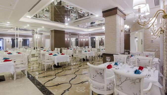Главный ресторан разделен на две части, закрытый салон 450 мест, терраса 250, лобби бар предлагает к услугам гостей c 10:00 до 00:00и рассчитан на 300 мест, а также конференц салон со всеми современными устройствами на 600 мест.