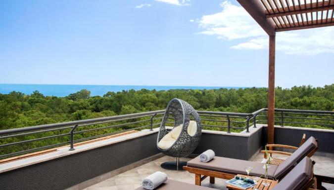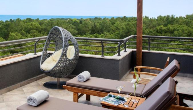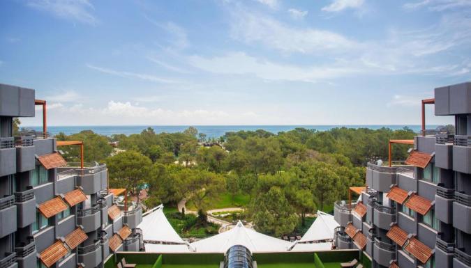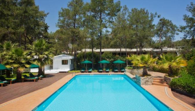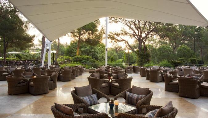 Отель обладает красивейшей зеленой территорией площадью 83 000 кв. м., и каждое дерево находится под защитой природноохранной организации Турции.