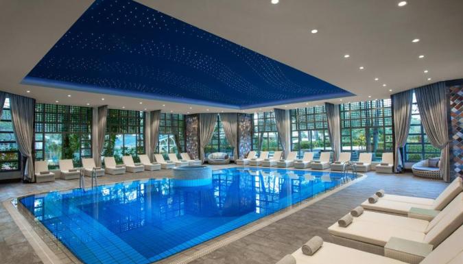 4 бассейна (1 крытый с подогревом в зимний период, 3 открытых - один с подогревом в зимний период)