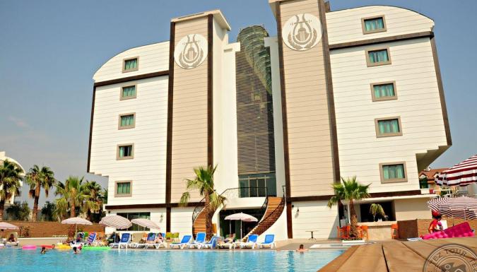 Отель площадью 20 000 м? расположен в пос. Чолаклы, в 9 км от г.Сиде и в 55 км от аэропорта г. Анталья, на второй линии.