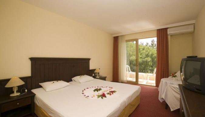 Отель предлагает гармоничное сочетание восхитительного места для отдыха, отличного сервиса и умеренных цен. Построенный в 2002 году отель занимает площадь в 5 351 кв.м. Он находится в поселке Кумкей. Город Сиде расположен на расстоянии одного километра от комплекса, в 500 метрах находится пляж. В отеле предлагается проживание по системе «Все включено». Основной ресторан, вместимость до 250 человек. Завтрак подается с 8.00 до 10.00, поздний завтрак с 10.00 до 10.30, обед с 12.30 до 14.00, ужин с 19.00 до 21.00. Все блюда сервируются в формате шведского стола. В баре у бассейна (время работы: 10.00-22.00) можно заказать чай с 16.00 до 16.30. Также имеются лобби-бар и бар в ресторане. Система питания действует с 10.00 до 22.00. Включено: прохладительные, алкогольные напитки местного производителя (джин, пиво, вино, раки, водка). За дополнительную стоимость можно приобрести: турецкий кофе, коктейли, напитки в бутылках, свежевыжатые соки, импортные напитки (бакарди, виски, кампари, коньяк, ликер, текила).