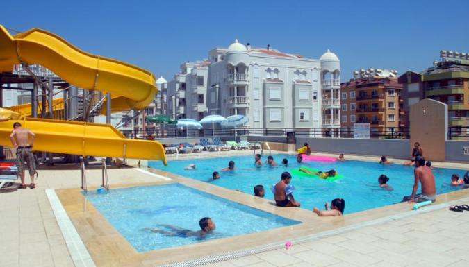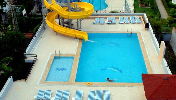 Отель работает по принципу «всё включено». Этот принцип начинает функционировать в 7:30 утра вместе с завтраком, продолжаясь до 23:00 ночи. В отеле к вашим услугам находится 1 крытый ресторан, 1 взрослый и 1 детский бассейн, сервис бар, бар у бассейна, снэк бар, бар на пляже. Для того, чтобы сделать приятным отдых гостей нашего отеля, день и ночь работает анимационная группа, включая в себя мини клуб и вечера для детей. Среди предлагаемых анимацией дневных мероприятий настольный теннис, водный мяч, дартс и пляжный волейбол. Бесплатный сервис: К приципу «всё включено» относятся завтрак, обед, ужин, снэк, полдник, а также любые виды местных алкогольных и безалкогольных напитков в наших барах. Платный сервис: Любые виды импортных алкогольных напитков, еда и напитки в баре на пляже, турецкий кофе, свежевыжатые соки, шезлонги и зонтики на пляже, в комнатах сейфы, содержимое минибара, телефон, факс, массаж, а также услуги находящихся при отеле магазинов и салонов.