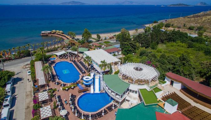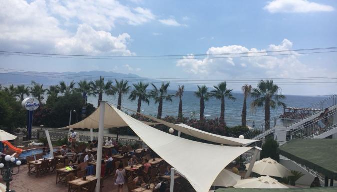 Собственный песчаный пляж с голубым флагом находится рядом с отелем. Шезлонги, зонтики, матрацы, пляжные полотенца - бесплатно.