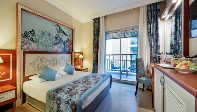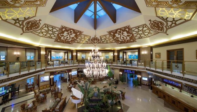 Отель состоит из одного 5-ти этажного корпуса и двух 2-ух этажных корпуса. Отель располагает огромной зелёной территорией. В отеле есть рестораны A'La Carte (турецкий и итальянский), главный ресторан, лобби-бар (500 мест) и бар в саду. Отель располагает условиями для инвалидов.
