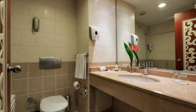 Балкон, Ванна/душ, Туалет, Фен, Кондиционер (центральный), Российский ТВ-канал, Спутниковое телевидение, Смена постельного белья (3 раза в неделю), Уборка (ежедневно), Телефон, Минибар (платно), Сейф (платно).