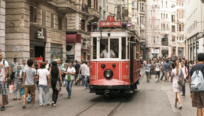 Таксим – оживленный торговый район с ночными клубами и ресторанами. Он расположен вокруг одноименной площади с монументом "Республика". На главной пешеходной улице, Истикляль, находятся кинотеатры, кафе и магазины известных брендов, занимающие дома XIX века. Здесь же ходят старинные трамваи. На многочисленных соседних улочках можно найти бары, антикварные магазины и рестораны на крыше с видом на Босфор.