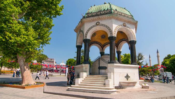 Немецкий фонтан, расположенный на центральной площади Султанахмет, был