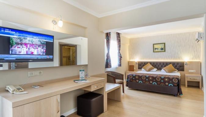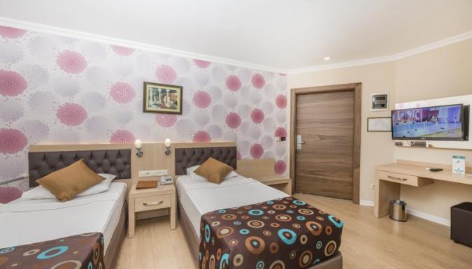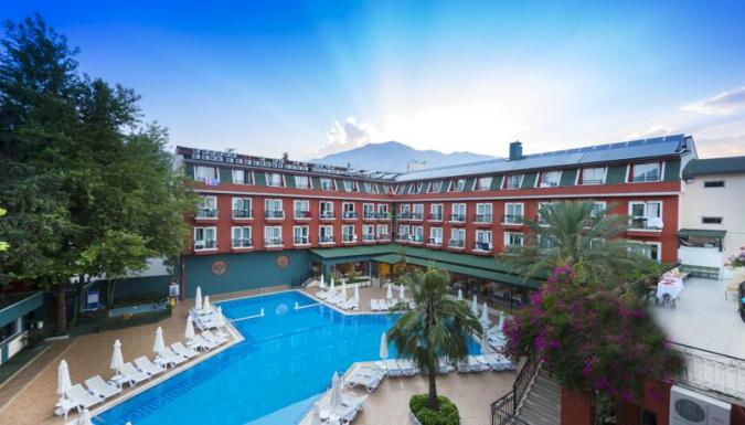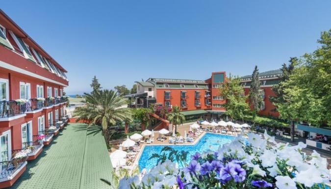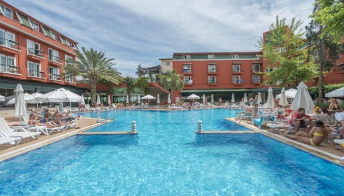 Отель состоит из двух небольших трехэтажных зданий. На территории отеля есть ресторан на 280 персон, рыбный ресторан, фастфуд, Титаник бар-ресторан, бар с бильярдом, снэк-бар, кафетерий, супермаркет, парикмахерская, бутик, сейф на ресепшн, бассейн (300 кв.м), детский бассейн (8 кв.м), турецкая баня, сауна, массаж, джакузи, фитнес-центр, игровая комната, библиотека, настольный теннис, бильярд, дартс, настольный футбол. Пляж - галечный, находится в 100 м от отеля; зонты, шезлонги, матрасы- платно. Развлечения и спорт: анимация, салон для игр, телезал, конференц-зал, бассейн (300 кв.м), детский бассейн (8 кв.м), детская площадка, фитнес-центр, игровая комната, библиотека, настольный теннис, дартс, настольный футбол. За дополнительную плату: турецкая баня, сауна, массаж, джакузи, парикмахерская, бильярд, интернет.