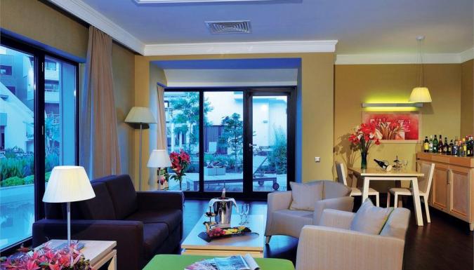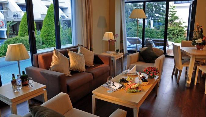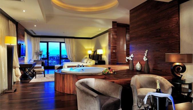 Центральный кондиционер (работает в зависимости от погодных условий), мини-бар (безалкогольные напитки, пиво, чипсы - бесплатно, ежедневное обновление), чайник и набор для приготовления чая/кофе, спутниковое ТВ с российским каналом (4 канала), сейф (бесплатно), прямой телефон, Wi-Fi, ванна, фен, тапочки и халаты, балкон/терраса.