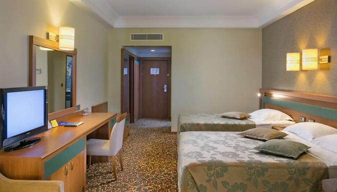 Балкон, Ванна/душ (ванна), Кондиционер (центральный), Российский ТВ-канал, Смена постельного белья (3 раза в неделю), Спутниковое телевидение, Телефон, Туалет, Мини-бар (Платно), Полотенца, Сейф (Платно), Телевизор, Уборка (ежедневно), Фен