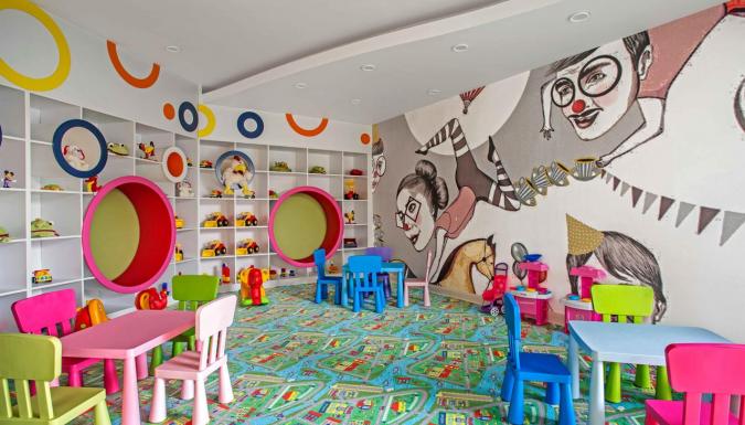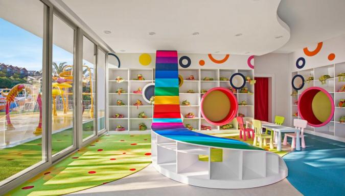 клуб для подростков (13-16 лет) детский клуб (4-12 лет) детская площадка (в т.ч. водная) водные горки: 4 детский буфет кинотеатр (детский) детская дискотека детские бассейны: 2