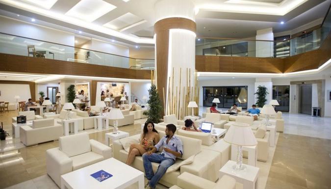 Отель CRYSTAL GREEN BAY RESORT - это бывший Club Marverde. Отель дает возможность почувствовать карибскую атмосферу пляжей и прекрасных пальм. Это идеальное место, чтобы насытить отдых широким спектром спортивных мероприятий. Построен в 1992 году, общая площадь состaвляет 50 000 м2, последняя реставрация сделана в 2010 году. Отель состоит из 3-этажного главного здания Main Building и 3-этажного здания Annex (45% номеров с видом на море): Main Building: 162 standard room (из них 2 номера для инвалидов, макс. 2+1 чел., 25 м2); 22 двухкомнатных family room (2 спальни с дверью, ванна комната, балкон, макс. 4 чел., 35 м2); 4 двухкомнатных suite (гостиная, спальня с дверью, макс. 4 чел., 35 м2); 1 двухкомнатный King suite (гостиная с балконом, спальня с дверью, 2 ванные комнаты, макс. 4 чел., 130 м2). Annex: 6 standard room (макс. 2+1 чел., 30 м2); 12 двухкомнатных family room (гостиная, спальня с дверью, макс. 2+2 чел., 35 м2); 5 трехкомнатных family room (гостиная, 2 спальни с дверью, макс. 2+3 чел., 40 м2). Территория: основной ресторан, 2 ресторана a la carte (турецкий и рыбный, по записи, посещение каждого ресторана 1 раз – бесплатно), 5 баров, 3 открытых бассейна (1 с морской водой), 2 водные горки, кабинет врача (в определенные часы), SPA-центр, парикмахерская, торговый ряд, прачечная. Развлечения и спорт: бесплатно - турецкая баня, сауна, тренажерный зал, аэробика, аквааэробика, волейбол на пляже, баскетбол, мини-футбол, теннисный корт с жестким покрытием (днем), прокат теннисных ракеток и мячей, настольный теннис, дартс, анимационная программа, живая музыка (в определенные дни), дискотека (вход). Платно - массаж, SPA-центр, бильярд, компьютерные игры, интернет-кафе, настольный футбол, освещение теннисного корта, беспроводной Интернет (в номерах), виндсерфинг (с лицензией), моторные и безмоторные водные виды спорта. Для детей:детский буфет, детский бассейн, детская площадка, мини-клуб (4–12 лет), няня (платно). Пляж:собственный, песок, мелкая галька. Бар на пляже: платно. У бассейна и на пляже: зонтики, шезлонги, матрасы – бесплатно. Пляжные полотенца: залог.