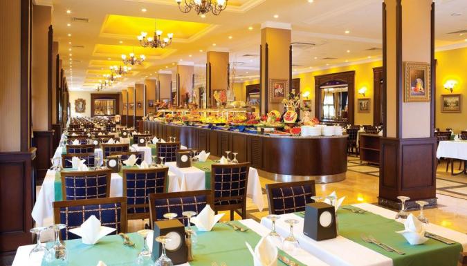 прачечная парикмахерская рестораны a la carte: 2 (рыбный, итальянский, по предварительной записи, за время проживания посещение один раз - бесплатно) магазины бассейны: 3 (открытые) аквапарк (в 250 м от отеля, посещение с понедельника по пятницу бесплатно) рестораны: 1 (основной) у бассейна полотенца: бесплатно, замена платно кабинет врача у бассейна зонтики, шезлонги, матрасы: бесплатно крытые бассейны: 1 (закрыт в летний сезон) Интернет-кафе платно Wi-Fi бесплатно (на территории) вегетарианское меню диетическое меню бары: 4 конференц-залы: 3 (на 70-180 чел) водные горки: 3
