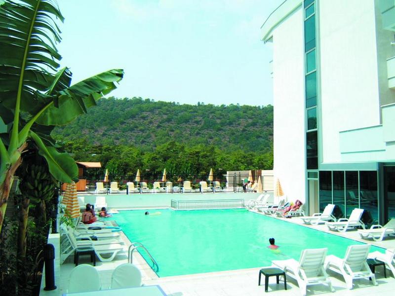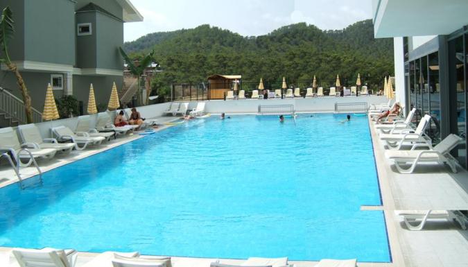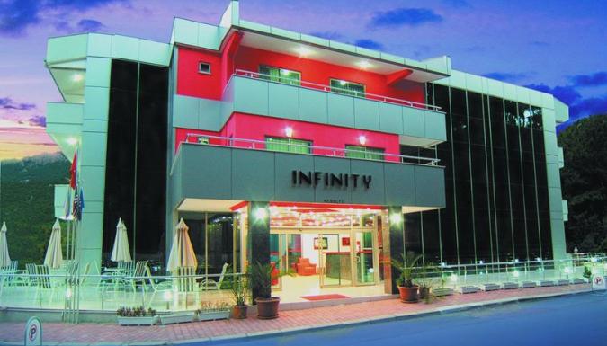 Infinity Hotel - новый отель, построенный в стиле модерн. Он был построен в 2005 году, состоит из одного корпуса и занимает площадь 5 000 кв. м. Песчано-галечный пляж находится в 1.5 км от отеля. 12 раз в день по расписанию (оно находится на информационном стенде отеля) до него ходит бесплатный автобус. Шезлонги и зонтики - бесплатно. Спорт и развлечения: пляжный волейбол, водные виды спорта (платно). Можно воспользоваться и находящимся ближе, в 700 м, общественным пляжем. Есть открытый плавательный бассейн с джакузи и детский бассейн. Шезлонги, матрасы и зонтики - бесплатно. В отеле можно играть в волейбол, настольный теннис, бильярд и дартс. Имеется сауна. Питание ALL INCLUSIVE (10:00 – 23:00) подразумевает: завтрак, обед и ужин (шведский стол), чай/ кофе, выпечка; алкогольные и безалкогольные напитки местного производства. Напитки импортного производства, свежевыжатые соки, турецкий кофе, капуччино, эспрессо, напитки в бутылках и на дискотеке, шампанское и мороженое, а также все напитки после 23:00 - платно. Есть открыто-закрытый основной ресторан, бар у бассейна, кафе-терраса. Развлечения: анимация, по воскресеньям – мангал-вечеринка с шашлыками, танец живота. есть игровая комната (бильярд, настольный теннис, настольный футбол). К услугам отдыхающих - рецепция; парковка; прокат автомобилей; прачечная; сейф (платно); доступ в Интернет; холл; лифт.