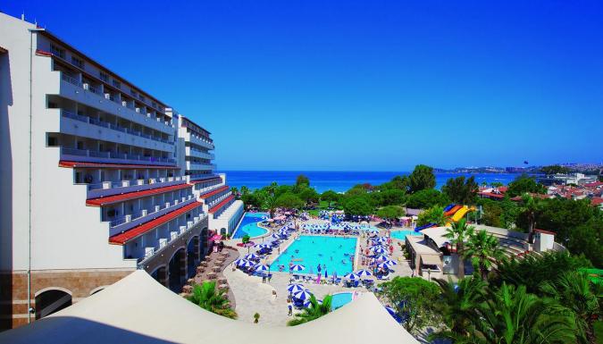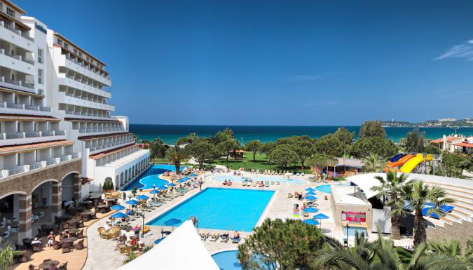 Построен в 1989 году, общая площадь 20 000 кв. м, последняя реставрация сделана в 2005-м. Отель состоит из одного 6-этажного основного здания (60% номеров с видом на море): 180 standard rooms (из них 1 номер для инвалидов, макс. 3 чел., 17 кв. м); 6 двухкомнатных family (гостиная, спальня с дверью, 1 ванная комната, 1 ТВ).