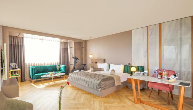 room service: круглосуточно, платно уборка номера: ежедневно кондиционер центральный (в определенные часы) телевизор сейф фен балкон телефон Wi-Fi, бесплатно мини-бар бесплатно (прохладительные напитки и пиво) пол: паркет смена белья: 3 раза в неделю набор для приготовления чая/кофе ванная (с душем)
