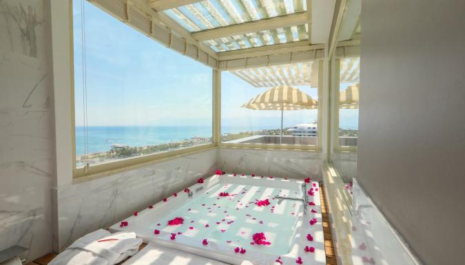 Отель в 10 км от аэропорта, в 12 км от центра г. Анталья, на берегу моря. Построен в 2005 году, общая площадь 33 000 м2. Последняя реновация прошла в 2020 году.