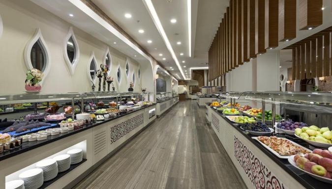 Круглосуточный шведский стол и всевозможные киоски с угощением