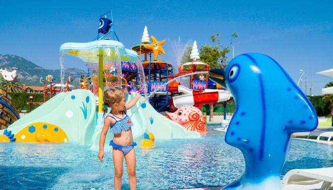 Детская площадка, Детский клуб (4-11 лет), Детский бассейн: с подогревом, Услуги няни: платно, Детский буфет, Детский аквапарк