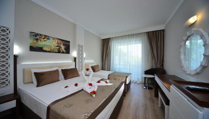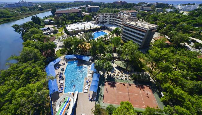 Отель для спокойного семейного отдыха расположен рядом с живописным озером, в 5 км от курортного поселка Манавгат. На территории: открытый бассейн, водные горки, Spa-центр. От отеля до пляжа предоставляется автобус.