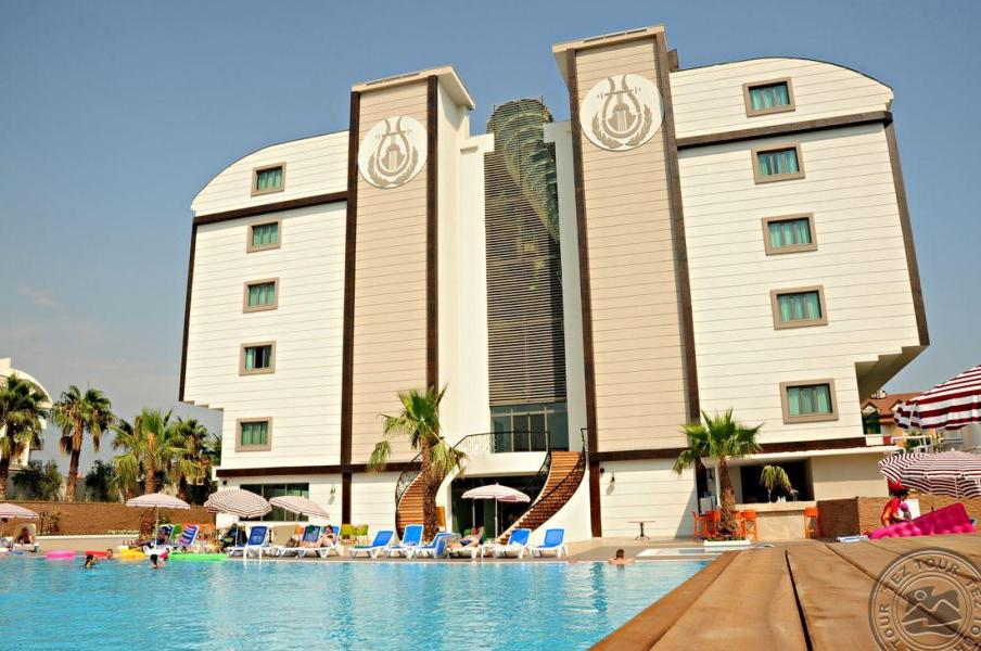 Отель площадью 20 000 м? расположен в пос. Чолаклы, в 9 км от г.Сиде и в 55 км от аэропорта г. Анталья, на второй линии.
