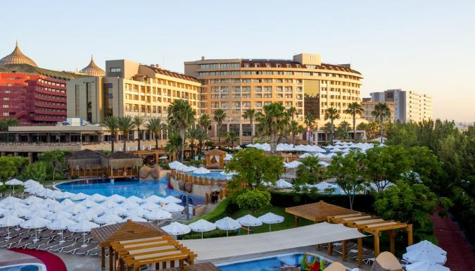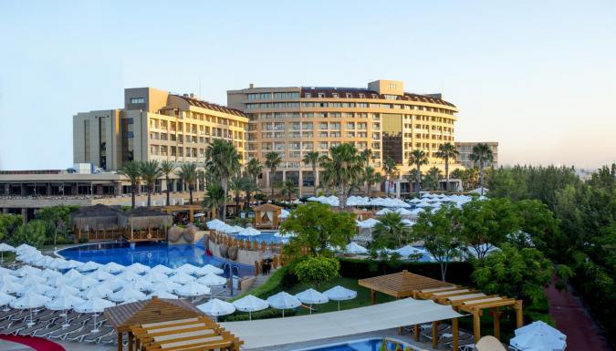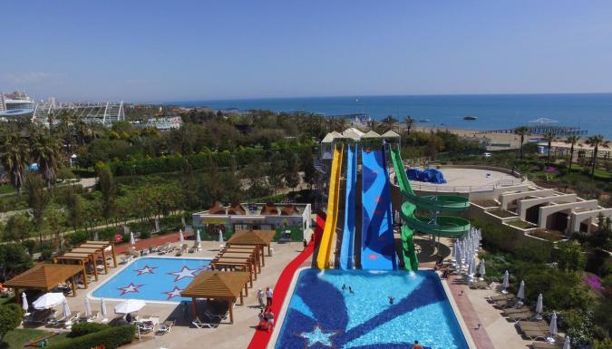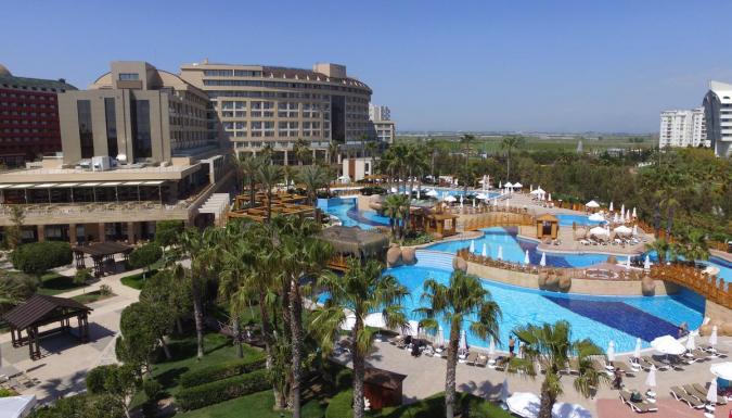 Отель находится на самом берегу моря, в районе Лара, в 14 км от аэропорта Антальи. На ухоженной территории: бассейны, водные горки, рестораны и бары. Для детей работает мини-клуб, а их родители могут погрузиться в расслабляющую атмосферу SPA.