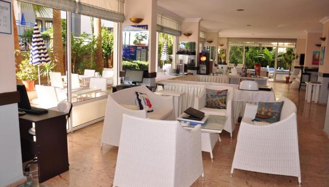 Отель расположен в 50 метрах от побережья Средиземного моря в городе Алания. Рядом находятся различные магазины, рестораны и бары. От отеля легко добраться к различным туристическим местам Алании.