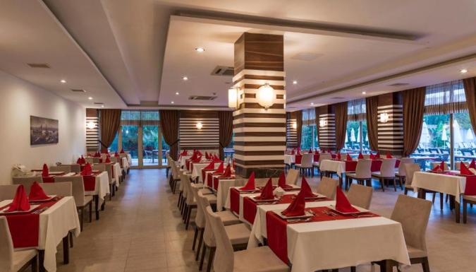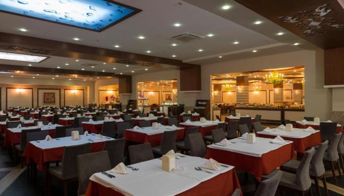 В ресторане отеля подают блюда по меню, а также сервируют «шведский стол».