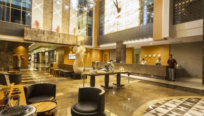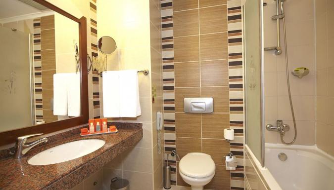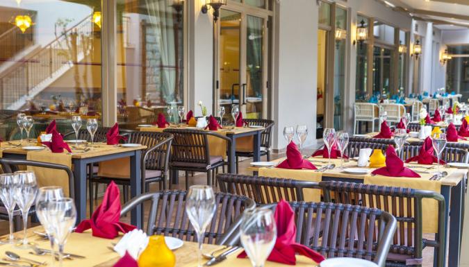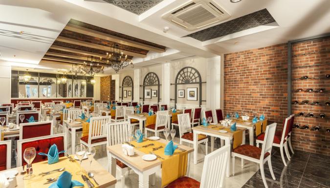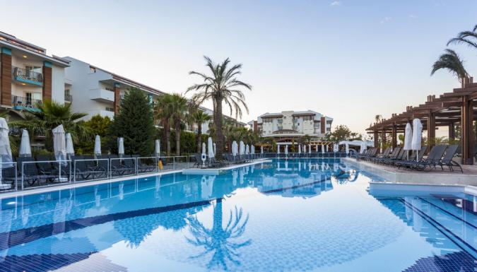 Отель на берегу моря, в поселке Богазкент. Ориентирован на семейный отдых. Небольшая, но удобная ухоженная территория, собственный пляж, СПА-центр, детский луна-парк.