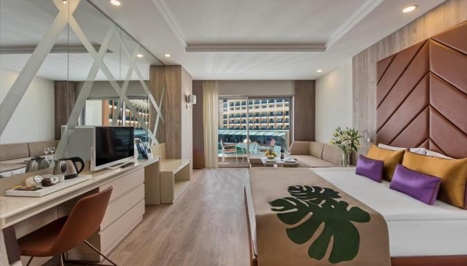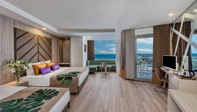 Отель расположен в 15 км от центра г.Анталия, в районе Лара. Аэропорт г.Анталия находится в 10 км от отеля. Рядом стоящие отели: Miracle Resort, Titanic Beach Lara.