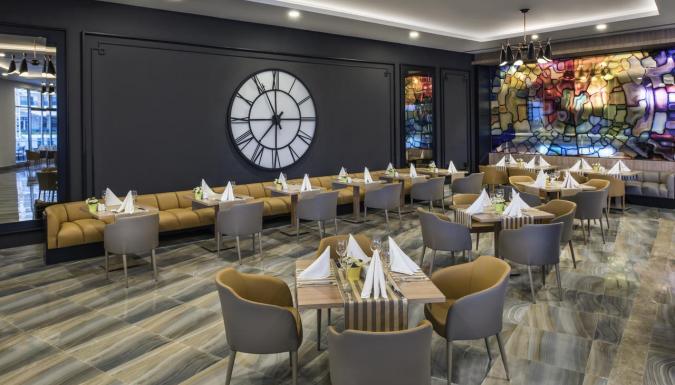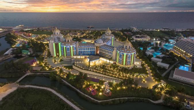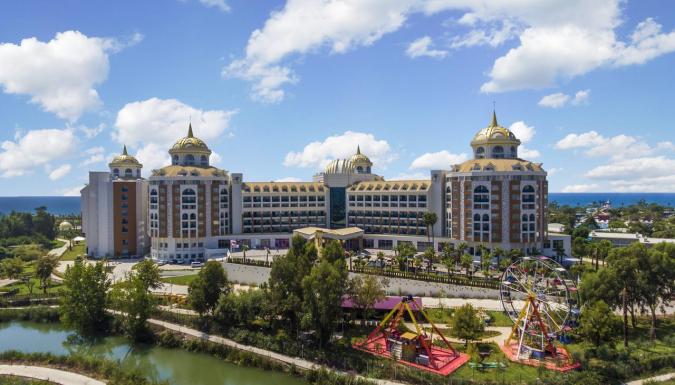 Отель с эксклюзивной архитектурой в районе Кунду. Открытые и крытые бассейны для детей и взрослых, аквапарк, великолепный SPA-центр с турецкой баней, множество ресторанов, баров, разнообразное питание.