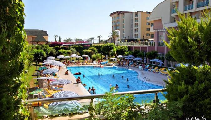 Отель в поселке Конаклы, в 12 км от Аланьи, на второй береговой линии. На территории имеются взрослые и детские бассейны. Анимационная группа организовывает дневные спортивные занятия и разнообразные ночные шоу-программы. Для детей имеются детский клуб, игровая площадка, мини диско, детский кинотеатр, мини-шоу.
