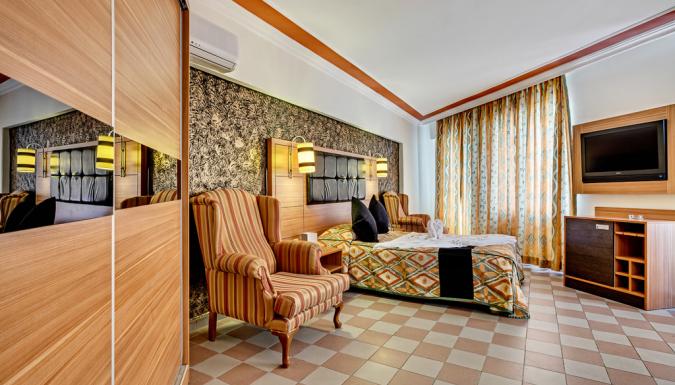 Балкон, Ванна/душ, Фен, Туалет, Кондиционер (пульт выдается под залог), Российский ТВ-канал, Спутниковое телевидение, Телефон, Мини-бар, Сейф.