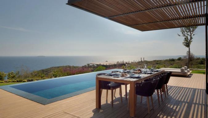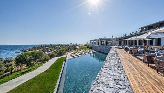 - Архитектура курорта, расположенного на нетронутом побережье Эгейского моря, не нарушает гармонии с природой